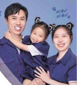 ④王东海、宫献文带着女儿拍摄全家福。 受访者供图