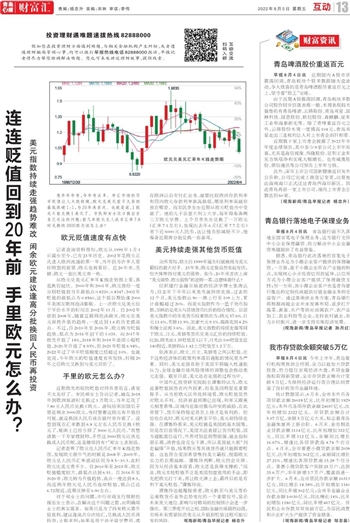 谭雅玲还提醒投资者,欧元跌至与美元等价是美欧货币竞争态势变化的一个重要信号,显示未来美元地位、影响与对格局的控制预计会进一步强化。第三季度开启之初,国际金融市场剧烈动荡,市场未来需要防范美元从升值到贬值过程可能引发的风险。 观海新闻/青岛早报记者 杨忠升