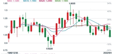 欧元兑美元汇率年K线走势图