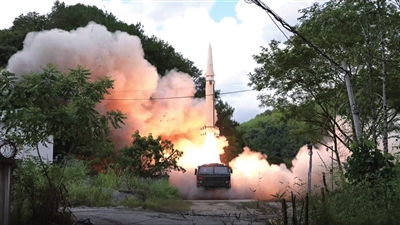 8月4日15时许,东部战区火箭军部队对台岛东部外海预定海域,实施了多区域、多型号常导火力突击,导弹全部命中目标区域,检验了精确打击和区域拒止能力。受领作战任务后,火箭军某导弹旅官兵迅速完成作战动员准备,部队依令向预定作战地域机动。抵达预定地域后,发射单元快速隐蔽待机,做好发射准备。接到发射命令后,号手迅速展开操作,起竖导弹,装订诸元参数。随着指挥员一声令下,导弹依次腾空而起,直刺苍穹,这次常规导弹火力试射,是东部战区在台岛周边开展一系列联合军事行动的重要组成部分,全面检验了武器装备性能和部队作战能力。