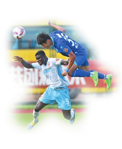青春岛外援瓦尔杜在比赛中争顶(下)。 新华社发