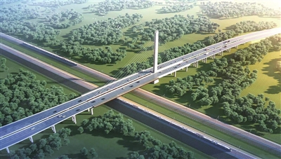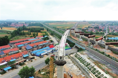 国内跨高铁最大悬臂转体桥的莱荣高铁跨青荣城际高铁转体T构合龙。资料照片
