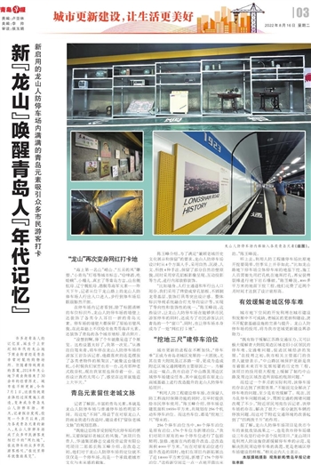 记者了解到,丰富的青岛元素,本就是龙山人防停车场与普通停车场的明显不同。而这处“不同”,得益于在对原龙山人防商业街进行改造时,建设者们“留住老城文脉”的规划思路。