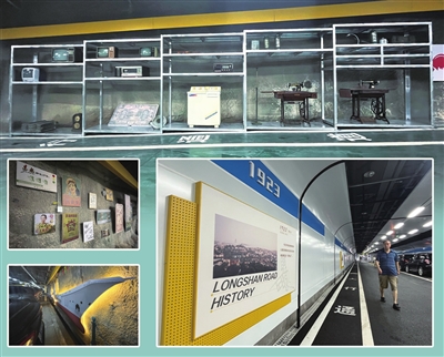 陈玉峰介绍,为了满足“兼顾老城历史文化展示和保留”的要求,龙山人防停车场设计时从4个方面入手,采用自然、沉浸、人文、科技4种手法,保留了部分自然岩壁原貌,同时采用穿孔铝板影像呈现、互动投影等方式,进行内部装修装饰。
