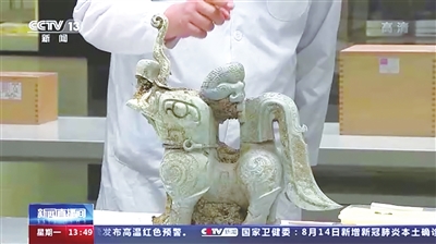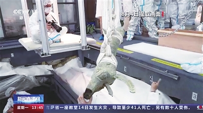 记者从三星堆遗址祭祀区考古工作队获悉,近期,考古队员在8号坑清理一件铜尊器盖时,在器盖顶部,又发现一个“四翼小神兽”,这也是三星堆发现的第一件带翅膀的神兽。