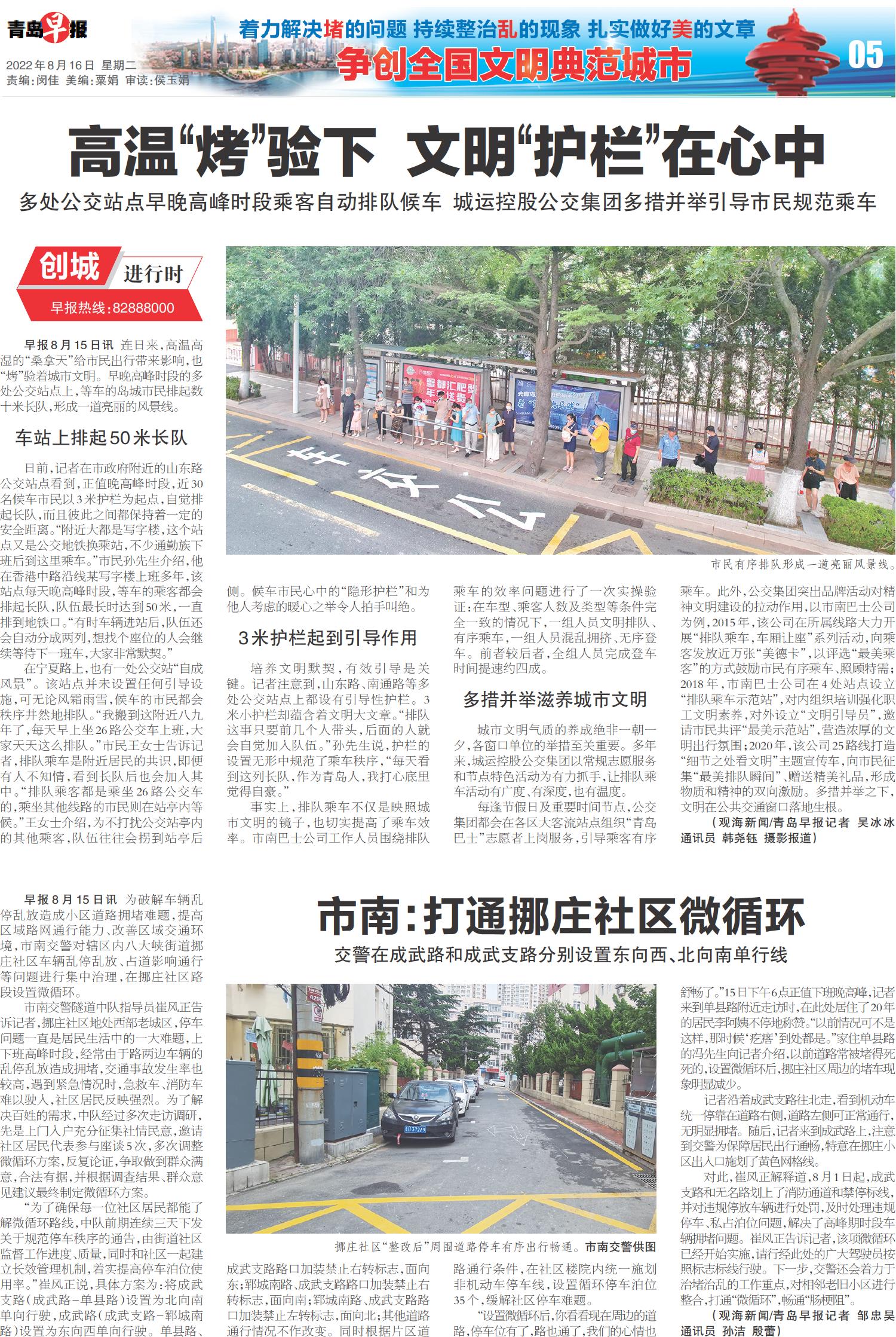 高温“烤”验下 文明“护栏”在心中 市南:打通挪庄社区微循环