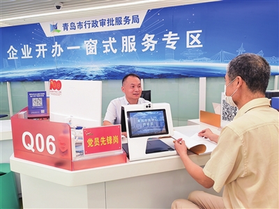 张大为在青岛市民中心为市民办理业务。 资料图片