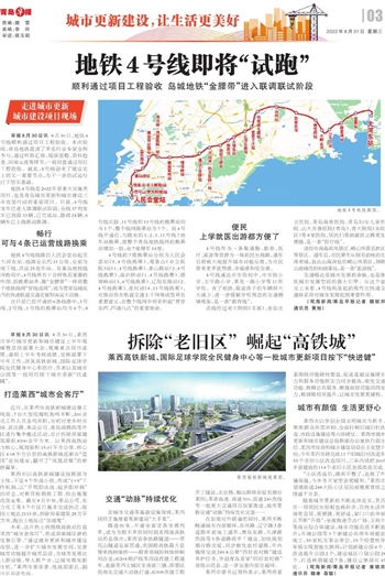 地铁4号线是2022年省重大实施类项目,也是青岛城市更新和城市建设三年攻坚行动的重要项目。目前,4号线客车已进入联调联试阶段,全线37列客车已到段33辆,已完成动、静调24辆,6辆车已上线联动联调。