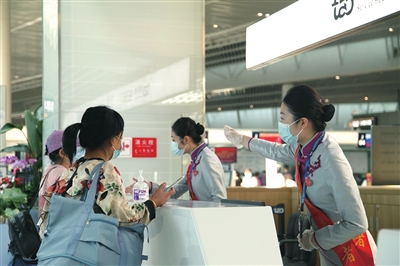 为确保中秋节期间旅客出行安全有序、高效快捷,青岛机场提前准备、多措并举,并精心组织了一系列中秋特色活动。同时,机场加大GTC值机区、航站楼人工值机柜台、预安检闸机、安检通道口、登机口等区域巡视力量,发挥咨询引导岗作用,严格执行首问责任制、首看责任制,主动为旅客提供热情、专业、便捷的服务体验。为特殊旅客设置一站式爱心办理值机手续专柜,安排专人负责,优先为无陪老年人、无陪儿童和病残旅客等提供全程陪护服务,并为有需要的旅客提供爱心药箱、针线包、胶带、口罩等便民服务。
