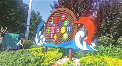 早报9月8日讯 当前,正值青岛市争创全国文明典范城市的冲刺阶段,根据李沧区城市建设管理局的工作部署,李沧园林公司从细处着手,在辖区主次干道路口更新安装公益广告,加快推进工艺景观小品设置,不断推进城区环境精细升级,为争创文明典范城市贡献园林力量。