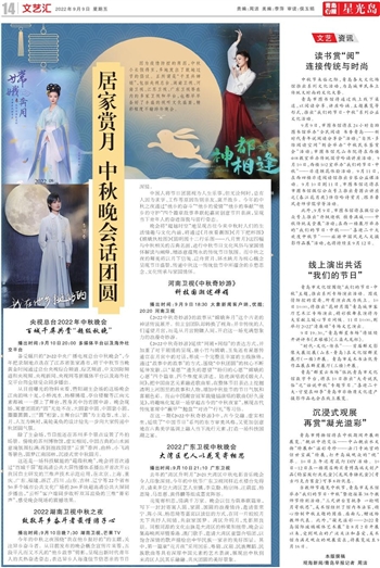 青岛“群星云书场”依托青岛市文化馆数字平台,将在10日推出“大奇说民俗”之“话说中秋”专题节目。“喜迎二十大·守望在四季”青岛市非物质文化遗产摄影作品也会在线上展览。