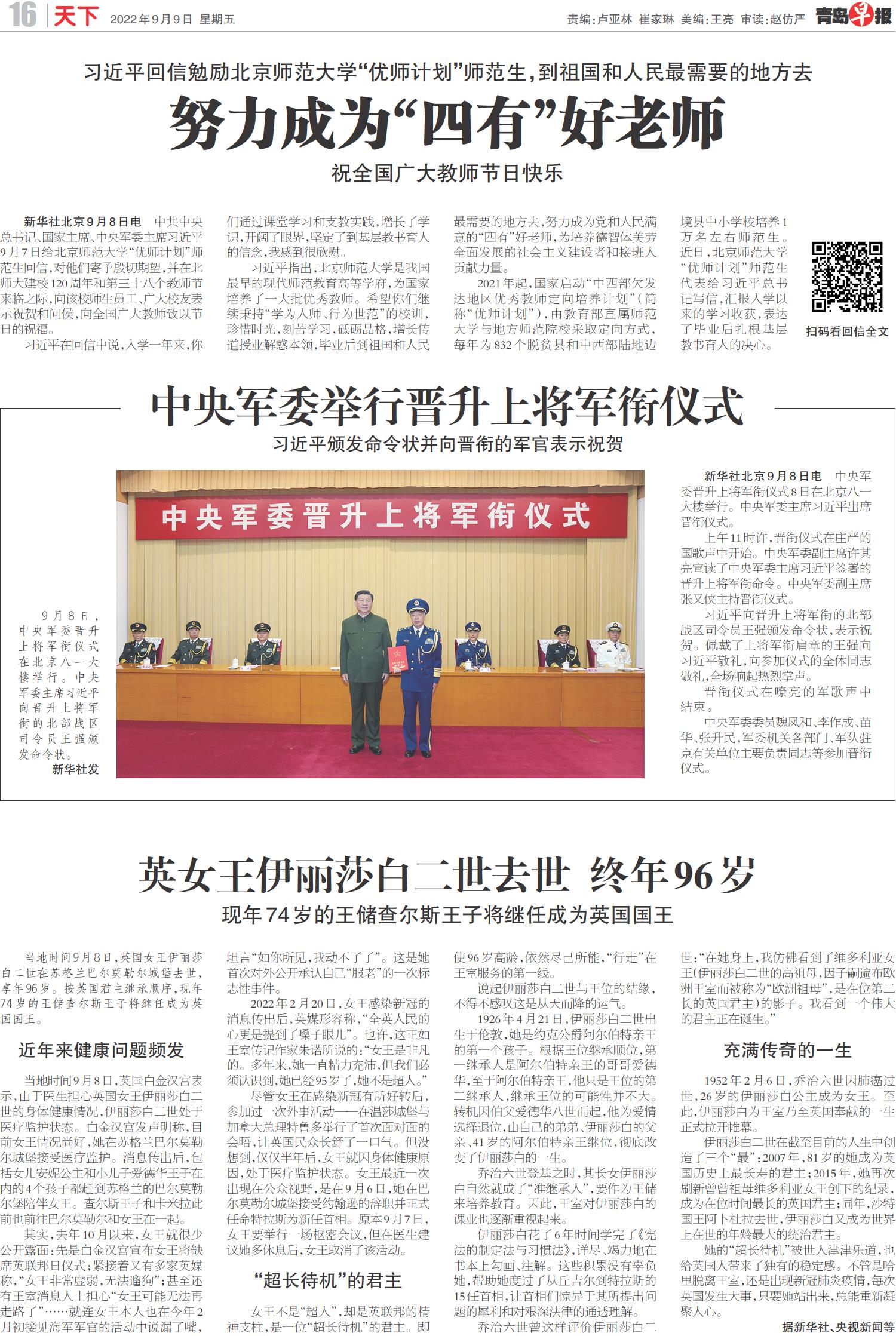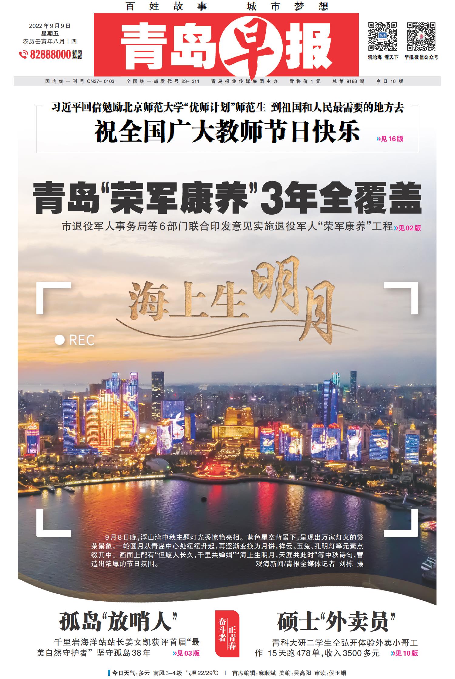 A01 头版 A02 喜迎二十大 A03 奋斗者 正青春 A04 同心抗疫 A05 我们的节日·中秋 A06 今日看点 A07 今日看点 A08 城市更新建设,让生活更美好 A09 身边事 A10 青岛面孔 A11 都市圈 A12 荣军敬老 A13 星光岛 A14 文艺汇 A15 财富汇 A16 天下