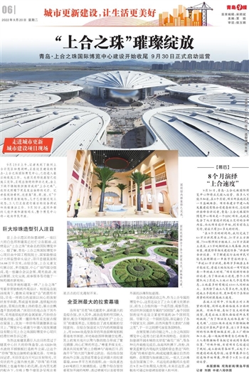 9月30日,青岛·上合之珠国际博览中心即将正式投入运营。很多人可能不知道,在8个月前,项目所在地还是一片盐碱滩涂。项目承建方中建八局发展建设有限公司党委副书记、总经理许岳峰告诉记者,青岛·上合之珠国际博览中心项目是一个EPC项目,也就是包含了从方案设计到竣工交付的全部内容,而从项目设计开始,到目前马上交付,前后只有200多天的时间。