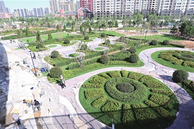 在展览展示的功能之外,上合之珠国际博览中心还努力打造其休闲特色。在面向如意湖开阔水域的北岸是“海花广场”,等各种花卉栽植完成后,在海风吹拂下,淡粉、淡紫及蓝紫花卉用起伏交错的姿态表达“风吹花海”的美好意向,构成起建筑通往自然的栈桥。在展馆与如意湖之间,一座人工沙滩也在加紧施工中。不远处的游艇码头也将在9月30日如期投入使用,未来在这里,游艇也可通过如意湖直接驶入胶州湾。