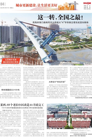 9月25日,随着最后一道工序完成,国内首座超大体量“A”字形钢主塔竖向转体桥梁——青岛西海岸新区跨风河新建桥梁工程海口路桥主塔顺利转至设计位置。本次主塔转体开创了国内竖转桥梁施工先河,填补了“A”字形钢主塔转体的技术空白,也标志着跨风河新建桥梁工程的施工进入关键阶段。据介绍,青岛跨风河新建桥梁工程由青岛西海岸旅游投资集团投资建设,总投资约5.7亿元,包含海口路跨风河大桥及凤凰山路跨风河大桥,将于今年12月底建成通车。