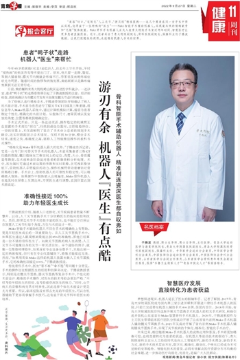 未来已来,相信随着Mako手术机器人的成熟应用和普及,手术将更加精准可控,也将直接转化为患者的获益。在机器人等前沿技术的驱动下,青大附院骨科正在从人工经验时代走向人工智能时代,新的手术理念、新的手术方式、新的手术技术层出不穷,数字化、精准化、微创化、个性化已经成为不可逆转的变革趋势。智能化技术的普及,必将有效解决医疗资源分布不均衡的社会难题,进一步推动医疗均质化、优质化,造福广大人民群众。