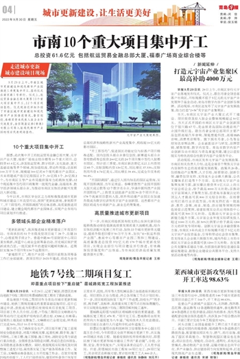 早报9月29日讯 莱西市城市更新和城市建设三年攻坚行动中,顶格推进的146个城市更新攻坚项目目前已开工144个,开工率达98.63%。