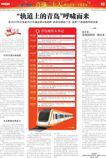 3号线、2号线、11号线、4号线……10多年间,窦大利参与了这些地铁线路的建设,在他的眼里,青岛地铁像一棵大树,茁壮地成长着。