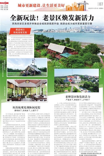 产业发展是赋能城市更新的重要引擎。旅游业涉及面广、关联度高、渗透性强,推进旅游业态及要素有机植入城市更新体系,不仅能够提升城市更新的内涵、形态与品质,也可以为旅游业开辟新的发展赛道。在当前疫情防控常态化的形势下,青岛西海岸新区正乘2023山东省旅游发展大会在青举办的东风,专注全域旅游品质提升,以精细定位开拓旅游市场新客源,让众多老牌景区焕发新活力,让城市发展增添新动能。