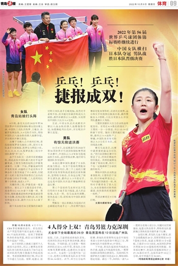 10月8日,在成都进行的2022年第56届世界乒乓球团体锦标赛男团半决赛中,中国队以3:2有惊无险地战胜日本队,成功晋级决赛,他们将与德国队争夺冠军。