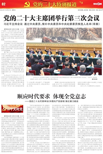 新华社北京10月21日电 中国共产党第二十次全国代表大会主席团21日上午在人民大会堂举行第三次会议,通过二十届中央委员会委员、候补委员和中央纪律检查委员会委员候选人名单(草案),提交各代表团酝酿。