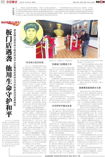 “雄赳赳,气昂昂,跨过鸭绿江。保和平,卫祖国,就是保家乡……”72年前的熟悉乐章,今天依旧让人心潮澎湃。72年前,中国人民志愿军肩负着人民的重托、民族的期望,高举保卫和平、反抗侵略的正义旗帜,同朝鲜人民和军队一道,历经两年零九个月艰苦卓绝的浴血奋战,赢得了抗美援朝战争的伟大胜利。记者从青岛市革命烈士纪念馆得知,青岛籍抗美援朝烈士现统计共有2176人。今年10月25日是中国人民志愿军抗美援朝出国作战72周年。连日来,早报记者采访了抗美援朝老英雄以及英烈的家人,探访烈士纪念馆,倾听英烈的故事,重温战火纷飞的岁月。