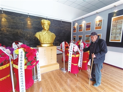 10月21日,记者来到即墨区鳌山卫街道姚家庄村南侧,姚庆祥烈士的纪念馆就坐落于此。纪念馆正厅中央摆放着姚庆祥烈士的半身像,展板上写有烈士的生平事迹,还收录了社会各界人士包括原外交部长乔冠华在内写下的挽联。几十年来,姚庆祥的三爹和堂弟两代人在这里讲述着英烈事迹,姚国泮、姚清升、姚法诰祖孙三代人接力管理和守护着纪念馆。村里不少年轻人在英烈事迹感染下报名参军。