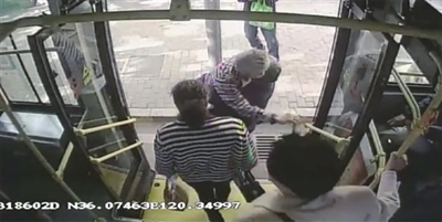 公交驾驶员刘云钢帮助老人组图。视频截图
