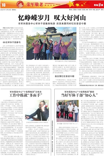 记得有一年春节,王栋忠正在家中准备年夜饭,接到一位老干部的电话,说家中水管突然冻裂,因正值假期联系不到维修人员万分焦急,他立即放下手中的活,带上工具包赶往老干部家中进行抢修,以最短的时间完成修复任务。“我服务的军休干部中很多是空巢老人,身体突发疾病急需到医院治疗的情况时有发生,只要军休干部有所需,我都随叫随到,带着老干部去医院,跑前跑后帮忙办理各种手续并及时安抚情绪。今年夏天,青岛地区多次遭遇强降雨天气,有两户老干部家中严重漏雨,得知消息后我立即上门,帮助做好紧急处理,保障了老干部的正常生活。”
