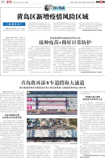 早报10月30日讯 记者从青岛市委统筹疫情防控和经济运行工作领导小组(指挥部)办公室获悉,10月30日晚,根据国务院联防联控机制有关规定,经综合研判,市委统筹疫情防控和经济运行工作领导小组(指挥部)决定,自2022年10月30日17时起,将黄岛区隐珠街道铁橛山路758号世纪花园东北区域(包含12、13号楼)、隐珠街道双珠路1512号康大金海园东北片(包含2、4、6号楼)、隐珠街道昌信(青岛)传动系统有限公司、隐珠街道烟台东社区西北区域(海王路、石桥路、台兴一路和墩台路合围区域)、珠海街道铁橛山路1156号海宇嘉园东北区域(包含10、13、16、17、18号楼)划定为高风险区。
