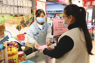 商户凭借“沿街商户积分兑换服务卡”兑换商品。灵山卫街道供图