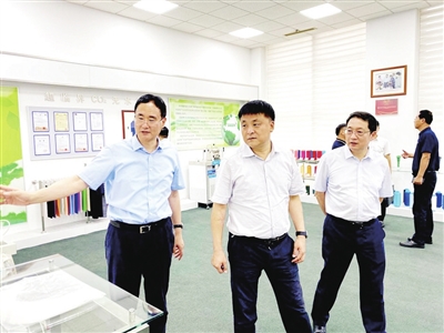 即墨区总工会党组书记刘玉峰(前排右一)陪同青岛市人大常委会副主任、市总工会主席张建刚(前排中)在即发调研产业工人队伍建设改革工作。