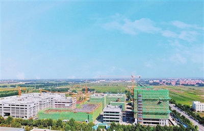 临空经济区建设是陆港蓝村区域今年重点突破的片区之一,陆港临空云创中心已完成15栋楼主体封顶,正在进行外墙门窗、保温和室内管线施工,配套区域正在进行地上主体结构施工和二次结构砌筑施工,招商工作同步展开,预计年底完工投入使用。