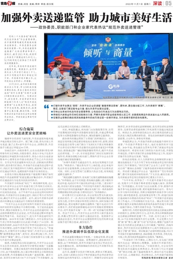 协商活动中,市政协委员、山东众成清泰(青岛)律师事务所主任林扬,市政协委员、青岛大学电子信息学院副院长单福凯和市政协委员、青岛小雨点公益慈善服务中心理事长孙伟强分别讲述了自己点外卖的经历。在肯定外卖送递服务市民生活、活跃城市消费的同时,政协委员们指出,外卖骑手在送递货品过程中逆行、闯红灯及不规范停车行为频发,既影响了城市正常的交通运行秩序,也威胁到外卖骑手自身的安全。