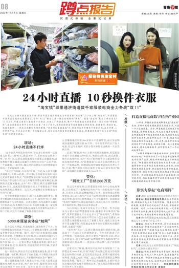 对于即墨服装市场而言,眼下正是最忙碌的季节。像李方静这样的电商在即墨还有上万个,每年的“双11”,他们都要准备十几万件服装。记者注意到,各电商都早早确定了打折活动,很多都执行24小时不间断直播,每一家实体店都有着自己的品牌和直播间,直播人员有着专业技术,不仅口才好,而且个个练就了秒换衣服的本领。