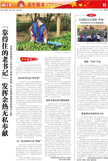“我们这个大院老人多,故事也多,这里住着的既有参加过抗美援朝的老兵,也有坚守三尺讲台,培养潜艇官兵的军队技术人员,身边有这么多为国家的强大贡献力量的人,我作为一名老兵,很愿意为大家服务,这也是我的荣幸。”来永胜对记者说。