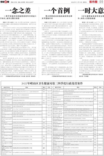 2022年崂山区卫生健康局第三四季度行政处罚案件