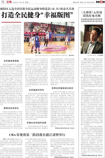 11月15日,国家体育总局结束了首批全民运动健身模范市(区)名单的公示,全国19个模范县(市、区),城阳区名列其中。根据国家体育总局《关于开展全民运动健身模范市和全民运动健身模范县(市、区)创建工作的通知》精神,以创建全民运动健身模范区为抓手,通过四年攻坚,城阳区七大类38项指标均达到或超过模范区创建标准。城阳区推动群众体育、竞技体育、体育产业全面协调高质量发展,还先后荣获全国群众体育先进单位、全国县域足球典型、全国青少年校园足球试点区、国家体育产业示范基地等10余项国字号荣誉。