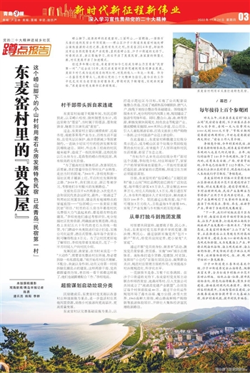 经过多年精心打造,东麦窑村如今已经成为崂山乃至青岛“民宿第一村”。“过去这10年,我们东麦窑村坚持党建统领各项事业发展,美丽乡村已成为远近闻名的网红村,村民的收入一年比一年高。作为一名基层党员带头人,我将以党的二十大精神为指引,在今后的工作中扎扎实实为老百姓当好服务员,带领村民不断增收,实现共同富裕。”东麦窑村党支部书记李绍亮说。