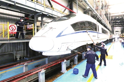 “动车一般是白天上线运行,晚间进行日常维护。”杨文献说,大多数“动车医生”夜夜与动车相伴,他们以过硬的业务素质和责任心保障着每一组列车的运行安全。