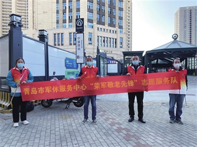 “您好,现在是红灯,请等绿灯再过马路……”在市南区南京路与宁夏路路口,来自市军休服务中心的“荣军敬老先锋”志愿服务队的队员们身着红马甲,手持文明指导旗,叮嘱行人走斑马线、不闯红灯,劝导司机礼让行人、缓慢行驶。