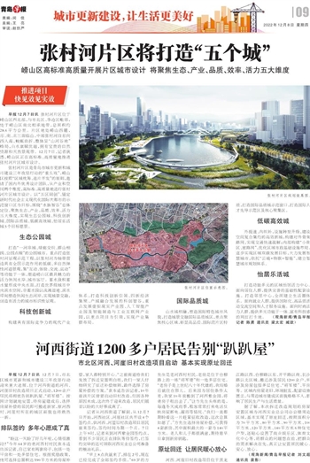 张村河片区是青岛市城市更新和城市建设三年攻坚行动的“重头戏”,崂山区按照“区域统筹、连片开发”的原则,邀请了国内外优秀设计团队,从产业和空间两个维度,高标准、高质量地进行张村河片区城市设计。以“五区同创”、锚定新时代社会主义现代化国际大都市的示范窗口区为目标,围绕“水脉智谷”总体定位,聚焦生态、产业、品质、效率、活力五大维度,实现生态公园城、科技创新城、国际品质城、低碳高效城、怡居乐活城5个目标愿景。
