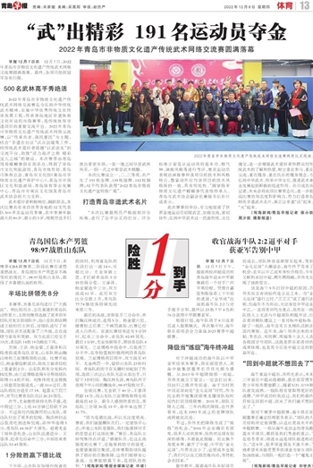 早报12月7日讯 12月7日,本赛季CBA联赛第二阶段比赛在诸暨重燃战火。青岛国信水产男篮在不被看好的情况下,98:97险胜山东队,取得了齐鲁德比战的胜利。