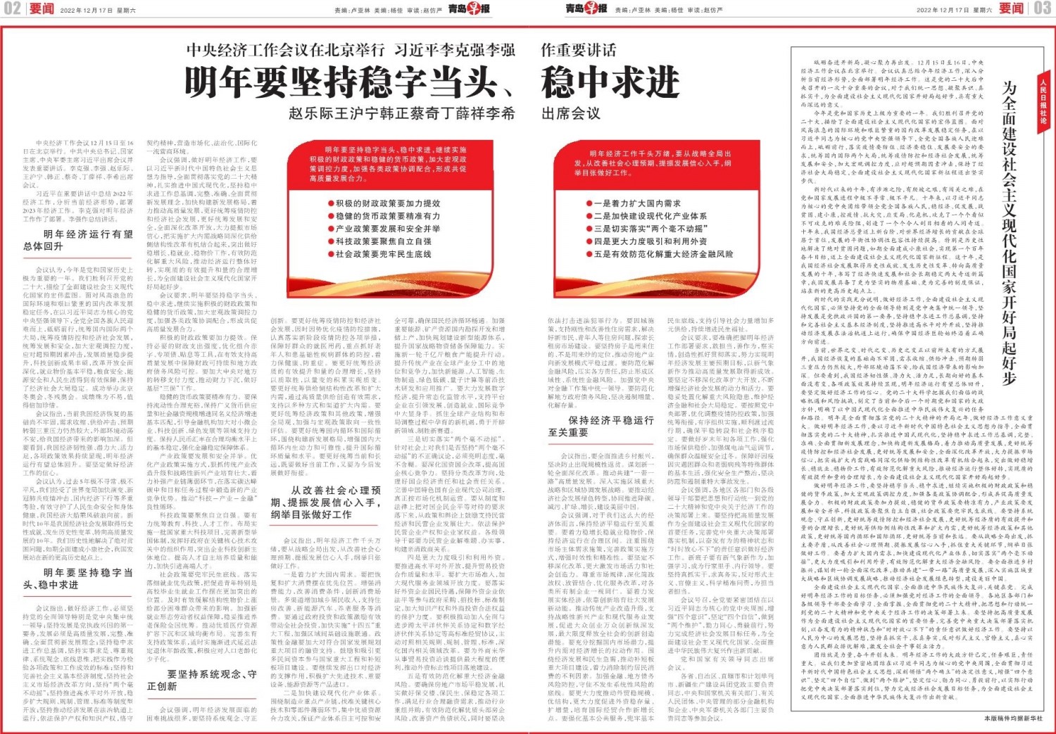 明年要坚持稳字当头、稳中求进