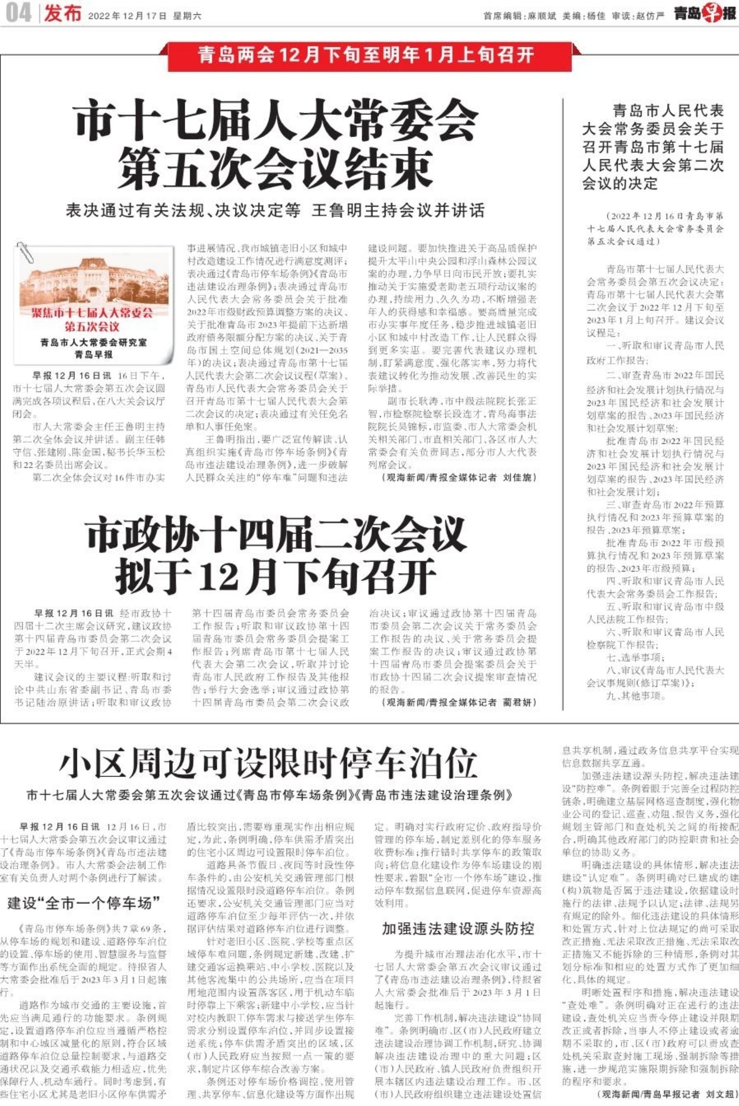 青岛两会12月下旬至明年1月上旬召开