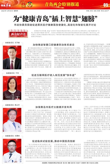 持续提升医疗质量,通过“互联网+”建设智慧型医疗体系,深化医药卫生体制改革,实施“健康青岛”工程,为百姓织牢健康“防护网”。来自医卫领域的多位市政协委员就智慧医疗相关话题进行了热烈讨论,从更好满足人民群众的健康医疗需求出发,不断探索和推进智慧医疗建设,有效促进居民医疗健康服务的便捷化、高效化和智能化。
