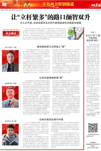 城市公共交通的服务质量,不仅是城市事业发展水平的重要标志,也是一座城市展示形象和文明的重要窗口。不断提升城市公共交通的服务质量,增强公共交通吸引力,既是城市优先发展的永恒主题,也是一项重大的民生工程。随着国家“双碳”战略的实施,推动城市公共交通向低碳环保方向探索前行,全力促进碳达峰、碳中和。此次青岛两会,早报邀请市人大代表、市政协委员及市民代表共聚“两会圆桌”,围绕如何促进智能交通普及以缓解交通拥堵,助力碳减排良性发展建言献策。