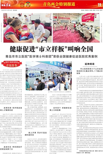 2021年2月,青岛市市立医院集中高端医学人才优势,由医院文化宣传部牵头遴选具备优秀健康传播能力的医学博士组建医学博士科普团队,开展健康促进工作,至今已建成覆盖82个专业、326名医学博士的专业科普团队。并制定量化考核等相关激励机制,保障团队积极性。