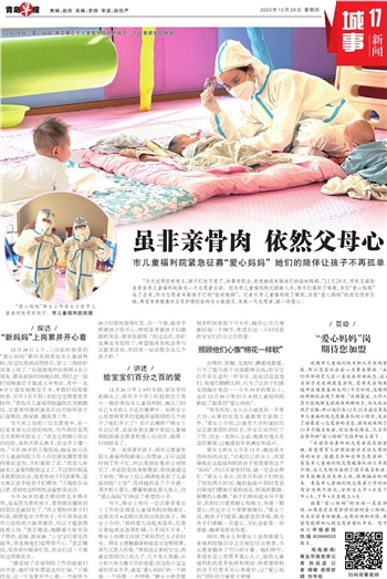 招募“爱心妈妈”的活动一直在持续,如果您是具有护理经验的爱心妈妈,并且目前身体健康,也有时间和热情,希望您能够加入到志愿者团队中来。您可拨打早报新闻热线82888000报名。