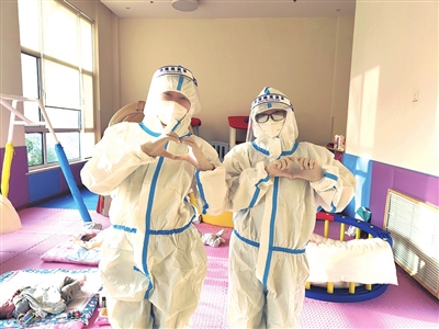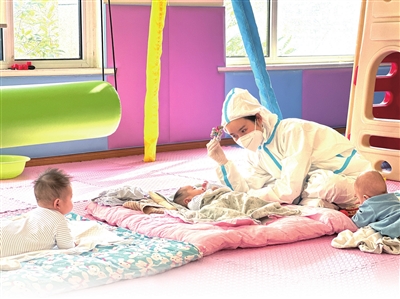 12月28日上午,三位临时招募的“爱心妈妈”准时来到青岛市儿童福利院,经过抗原测试阴性后,穿上二级防护装备上岗了。“在隔离缓冲区照顾4名小朋友,都是前段时间刚出院,得经过一段时间隔离后才能进入养育区,其中一名8岁小朋友刚做完手术,多数时间需要休息,另外3名不到1岁的宝宝需要更多陪伴。”青岛市儿童福利院副院长刘朝霞说,志愿者所做的就是在白天陪伴孩子以及喂奶、换尿裤、擦洗等工作。